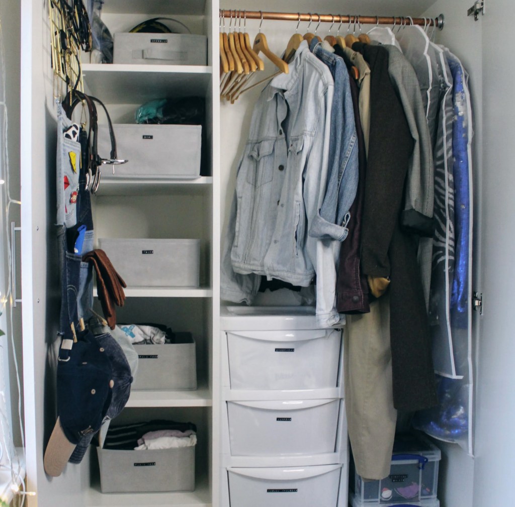 Once we identify what you’re keeping, we’ll look at organising, and figuring out a storage system that’ll work best for your new streamlined wardrobe.